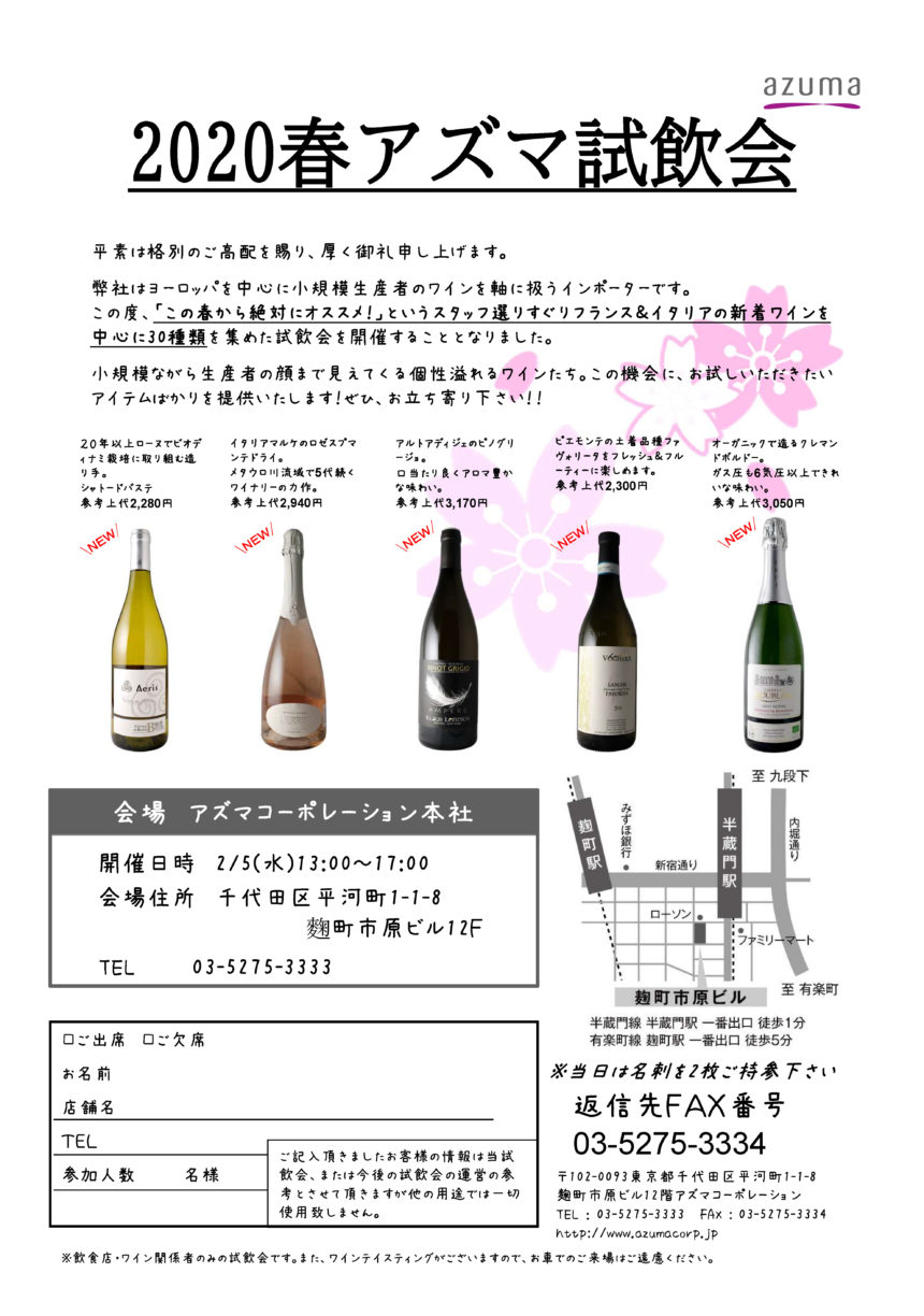 東京 春の試飲会のお知らせ